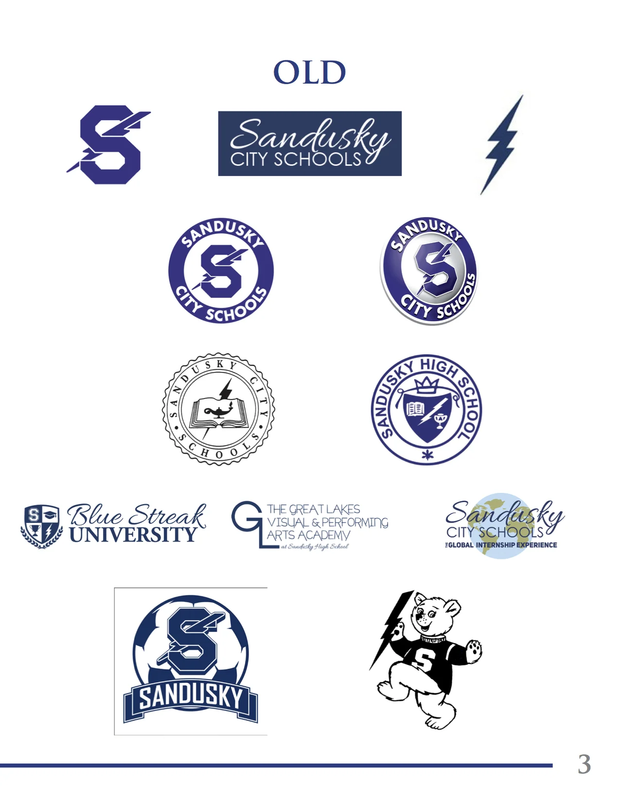 Sandusky City School where I went to High School had a mess of hand drawn logos from various decades that did not lend themselves to quick and clean reproduction in the digital age. On top of this there was a loosely defined color palette and no set fonts for the district, or how to implement them. Some 3D logos and bad clip art versions had also snuck in. In creating the style guide we first set out to create a backbone, the Block S and Blue Streak. In moving to a single bolder and easily reproduced Block S we firmed up the strength and tradition of the school. In moving the Blue Streak to vector we found the largest possible version of the old one and went from there. Then we streamlined the academic side of logos by settling on two systems, the roundel which has existed in various versions for a long time, and crest for the special programs, with vector icons to match. Along with a comphrehensive set of Do's and Dont's the style guide also aim to bring the apparel of the district in line and bring a clear and focused looked for Schools and they move forward with its transformation plan.